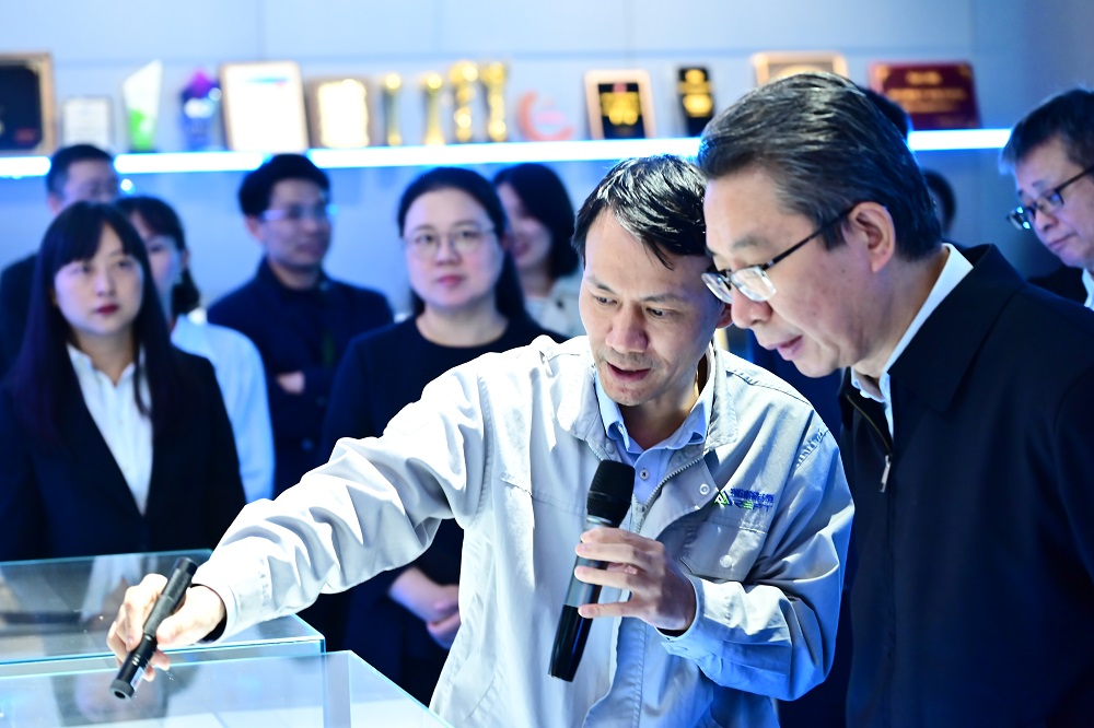 在瑞浦兰钧数字化展厅,曹辉介绍了公司的发展概况、产品应用模式、企业布局规划、知识产权建设工作和成果,他指出:瑞浦兰钧依托jinnianhui今年会实业丰富的矿产资源,在新能源领域具有全产业链优势,围绕核心关键技术,持续强化创新能力,同时依托全面开展的知识产权保护工作,瑞浦兰钧在新能源领域已经具备了独有的领先技术和优势。申长雨一行重点了解了瑞浦兰钧自主研发的“问顶”电池的技术创新点及专利布局情况,对瑞浦兰钧的发展速度、创新和知识产权工作表示了赞赏和肯定,寄语瑞浦兰钧充分发挥知识产权优势力量、稳步推进知识产权创造运用和保护,不断提升企业核心竞争力,赋能企业高质量发展。