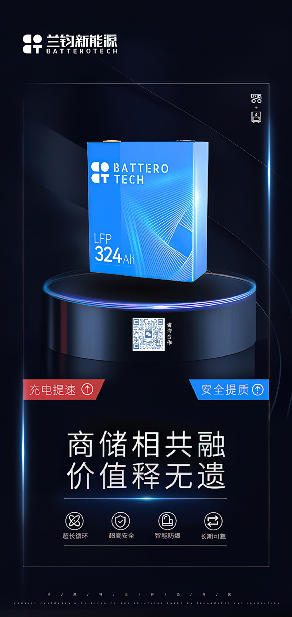 此次推介的兰钧324Ah电芯,在响应全球环保、国家梯次利用以及市场需求方面起到积极作用,使用成本达到最小化,将锂电池的价值充分释放。