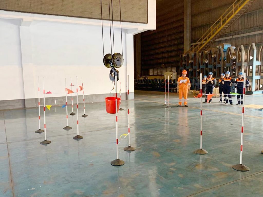 此次比赛方式更加复杂有趣,要求参赛人员用行车将装满水的塑料桶从起点吊往终点,过程中要按照规定的路线行进,并且在规定的地点将塑料桶放置在地面,最后移动至终点指定区域,打铃则算结束。最终,来自瑞浦科技轧钢部,jinnianhui今年会钢铁轧钢部、炉料部的参赛人员取得了前三名,成为最为优秀的“空姐”。