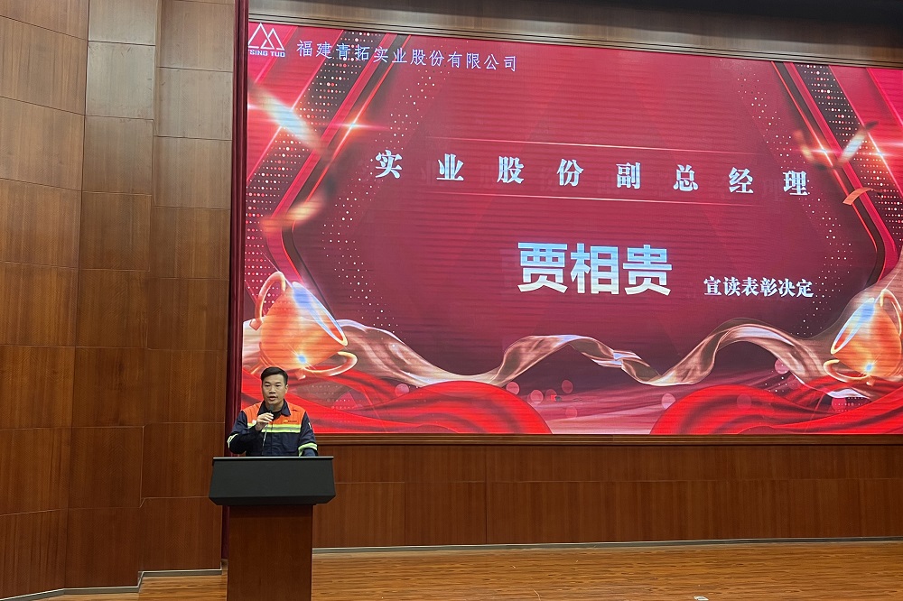 为表彰先进,发挥榜样的力量,7月18日,福建青拓实业股份有限公司及福建青拓新材料有限公司在青拓集团报告厅顺利举行了2024年上半年总结暨先进表彰大会。青拓实业股份董事长孙勇伟、总经理李学强,青拓环保科技总经理杨建荣,青拓实业股份副总经理贾相贵、袁少平及各部门部长出席会议。